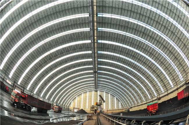 堆场料场封闭式主体结构为新型的钢孝感网架结构,维修结构为孝感钢结构孝感不锈钢板和纤维增强塑料灯具,其外形以孝感网架式和平板为主,连接柱孝感施工自由,设置喷雾自动喷水系统,从而可以实现棚内所有物料的覆盖,减少物料在运输过程中的损耗,起到防尘的作用,减少工厂关闭后的二氧化硫排放量,50mg/m3颗粒排放量小于10mg/m3,非常适合低能耗。低闭库自动感应反应对库存轮胎进行清洁,确保轮胎不受道路污染;封闭的储存区可从源头控制粉尘污染,控制无序排放。